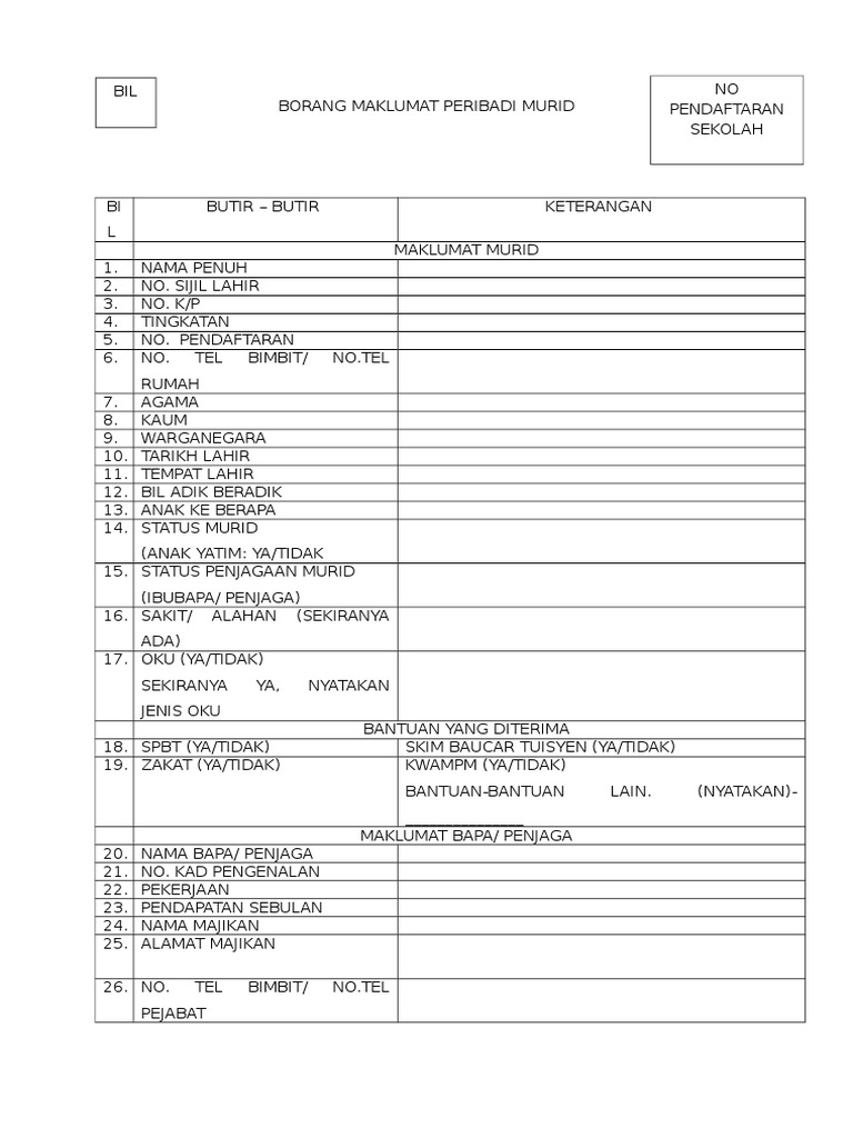 Borang Maklumat Peribadi Murid Pdf